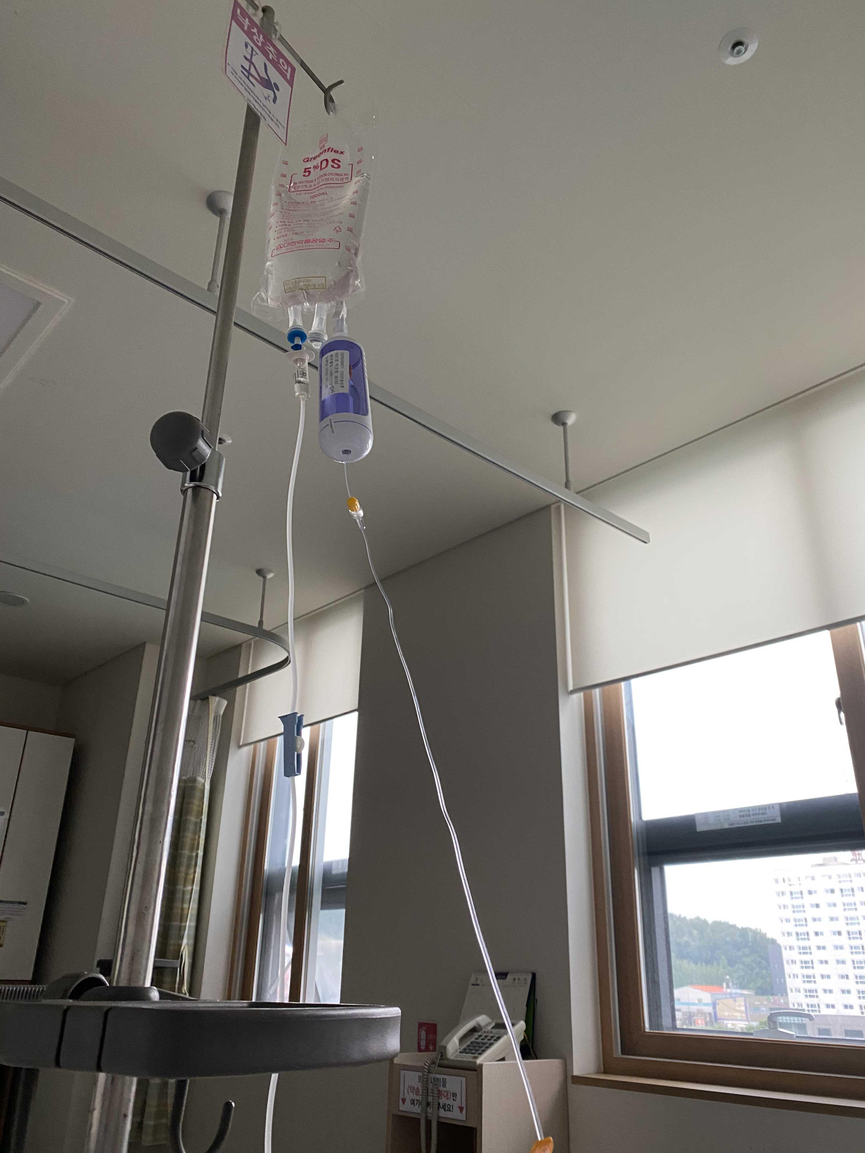 오전에 입원하여 링거를 달고 항생제 테스트를 하였다. 입원/수술하는 것이 처음이라서 왜 링거를 처음부터 달고 있는지 몰랐는데, 나중에 링거에 무통주사, 항생제를 링거를 통해서 맞으니 편하더라.