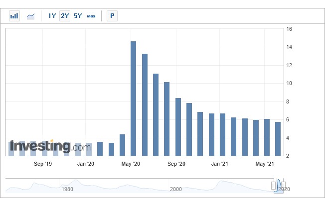 - 아래는 미국 실업률 지표 (작년5월 부터 점점 줄어드는 경향)