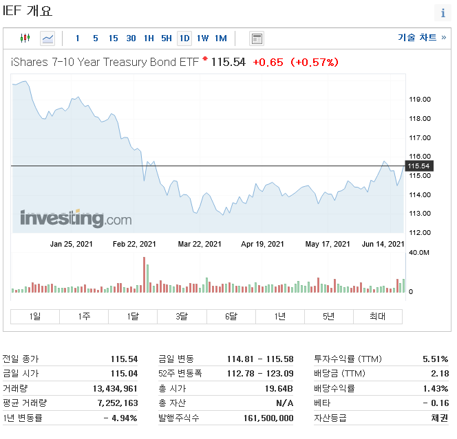 | IEF | 7~10년 만기 국고채 | $ 2.18 | 1.43% | 0.15% |