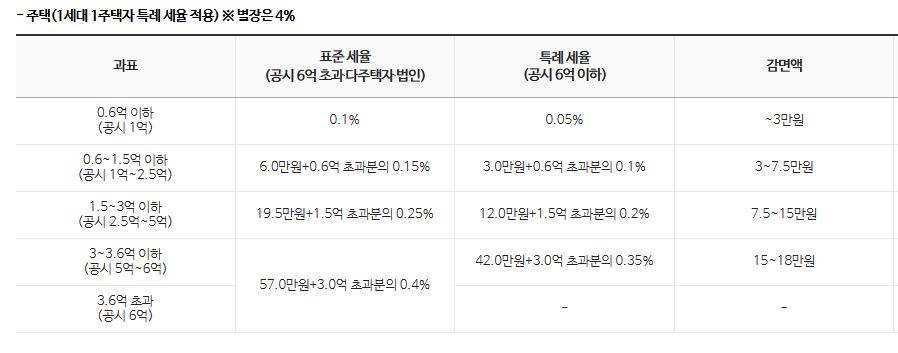 아래 표에서 1 주택의 경우 특별세율을 적용해서 계산하면 된다.