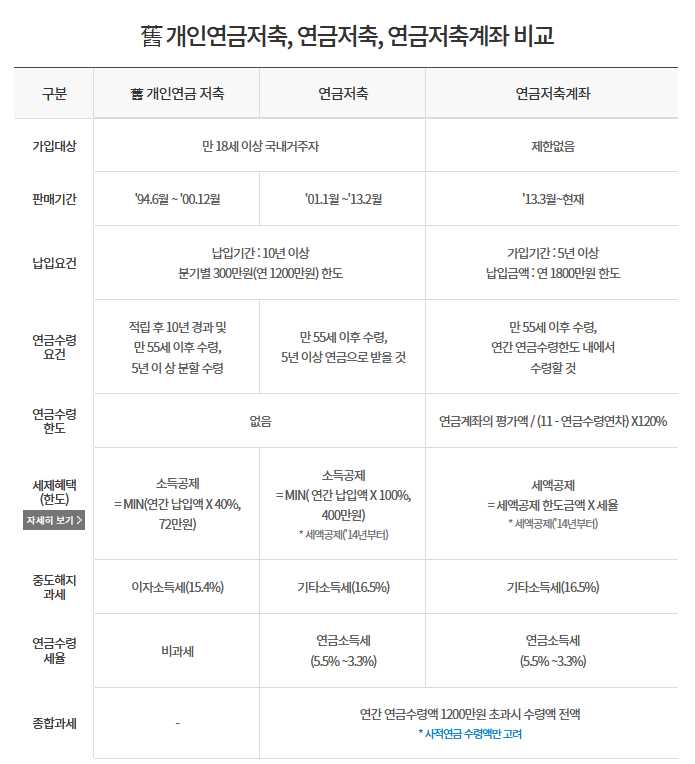 우선 연금 저축 중 연금 저축 보험과 연금 저축 펀드는 다음과 같다